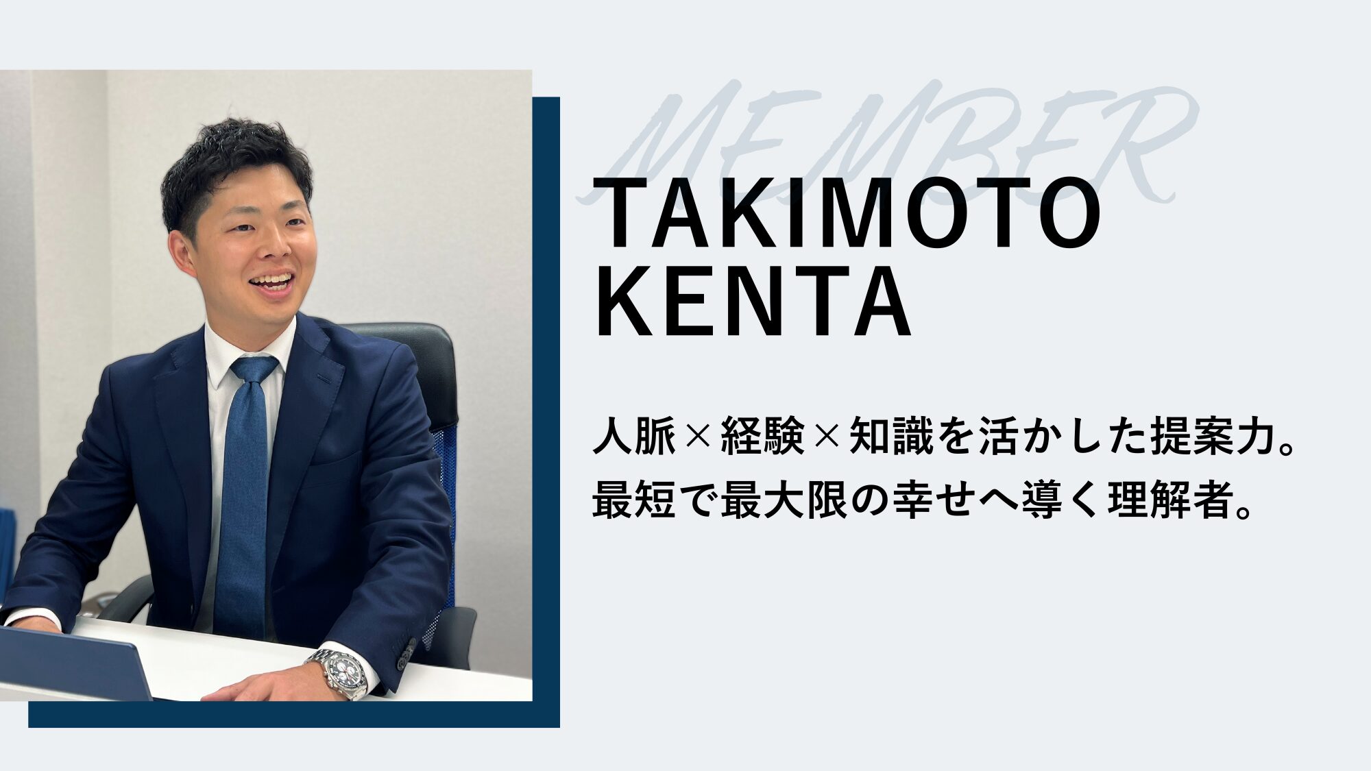 お客様本人だけでなく、そのご家族や関わる人の幸せまで見据え、一人ひとりの想いや背景を理解した上で提案することを常に意識しています。また、結果だけでなく、心のあり方や向き合い方が行動や人生を変えていくと考えており、仕事を通じて人として成長し続けることも大切にしています。人脈・経験・知識を最大限に活かしながら、お客様の理想や夢に寄り添い、最も信頼される理解者として、より幸せな未来へ導ける存在でありたいと考えています。
