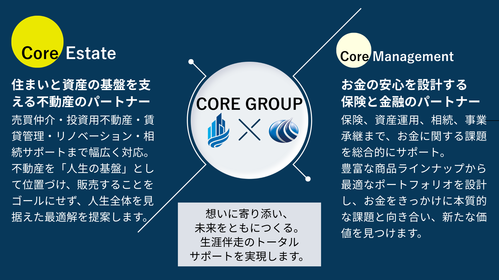 Core Estateはお客様の人生に一生涯寄り添う「人生の担当者」でありたいと願っています。